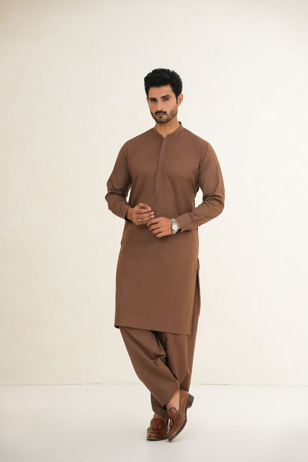 Brown Self Kurta Shalwar | ADKS-079