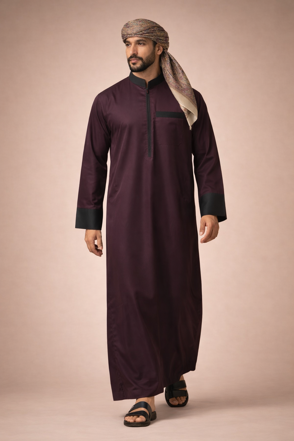 Burgundy Zipper Jubbah | J037