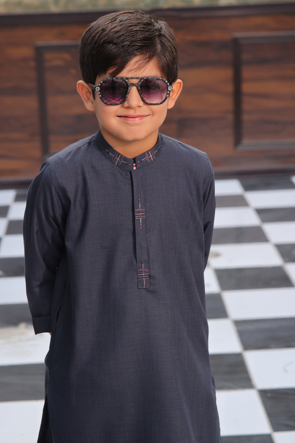 Greyish Blue Kids Kurta Shalwar