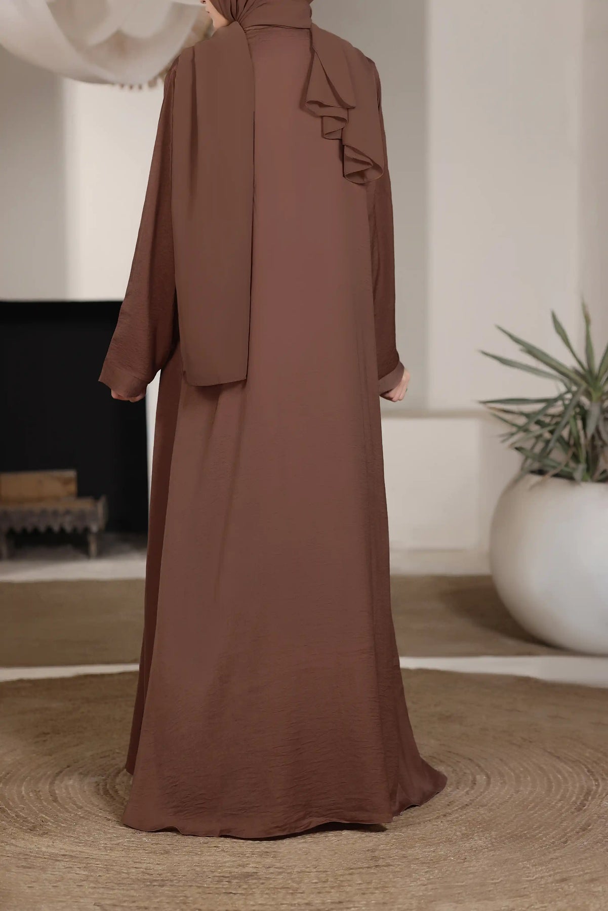 Crafted from premium Hareer Maqsood fabric Abaya is a blend of elegance and comfort. Its soft, lightweight texture flows gracefully, offering a luxurious shine with every step. Designed with fine finishing and a flawless fall, this abaya is perfect for both everyday wear and special occasions embodying modesty with timeless sophistication.