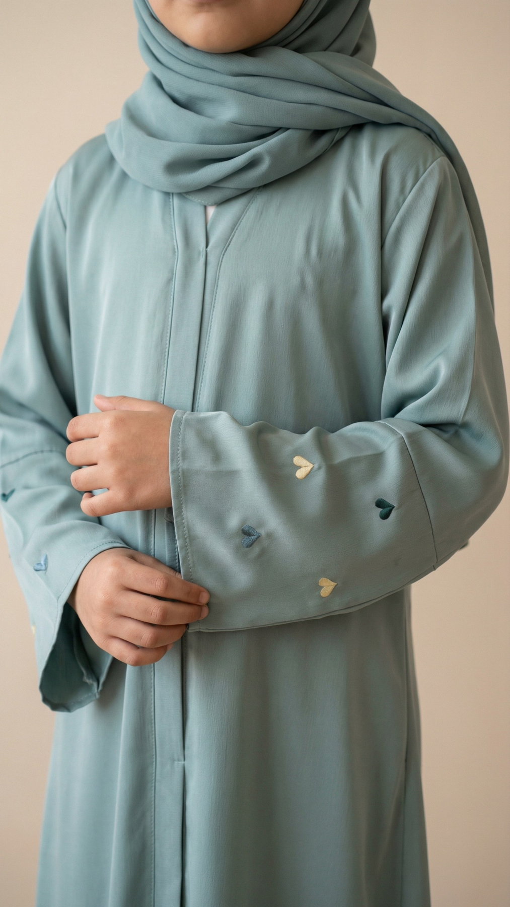 Made from soft, lightweight premium TikTok fabric with delicate heart embroidery on the sleeves.