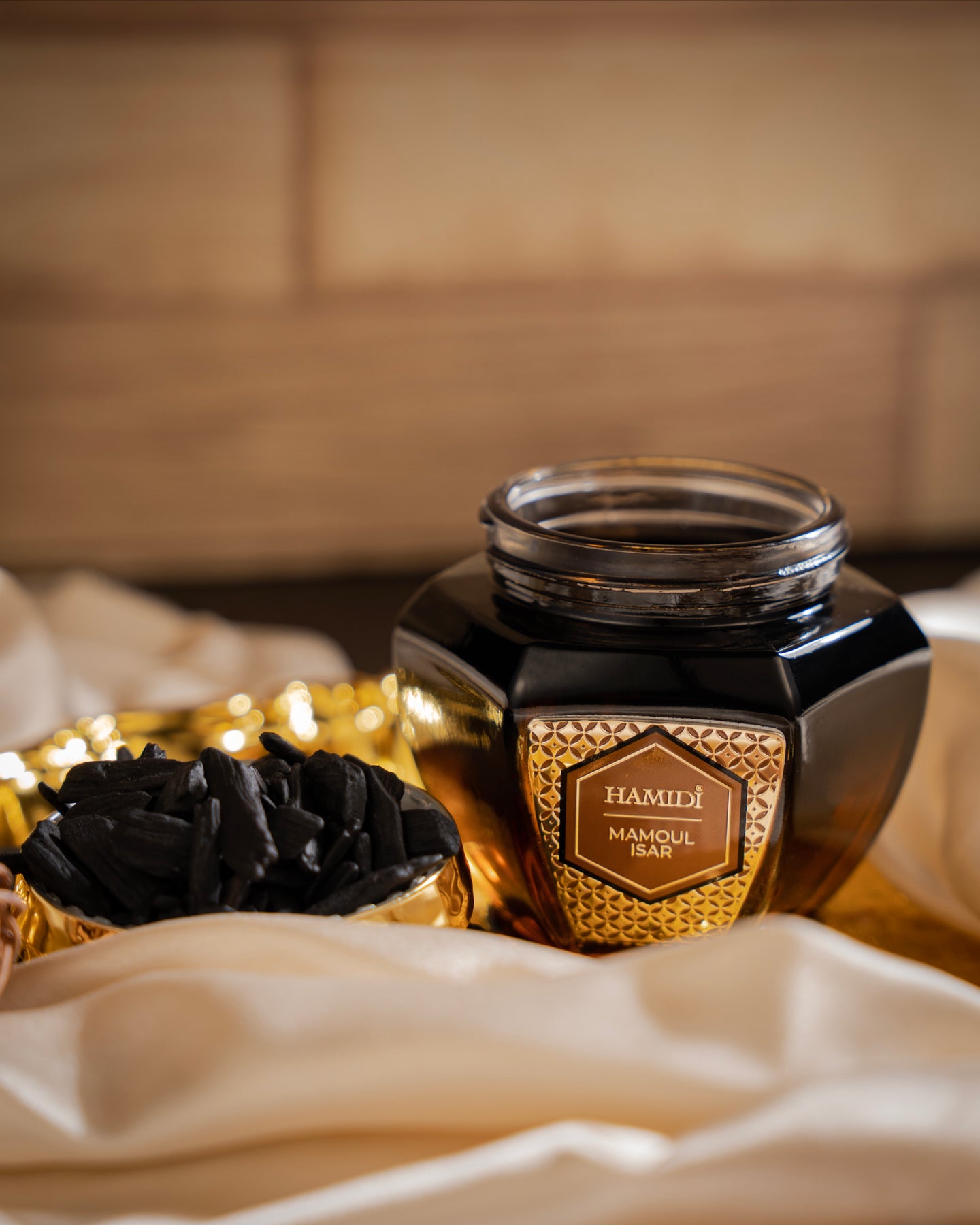 Experience the exquisite aroma of Hamidi Mamoul Isar 50gm Bakhoor, crafted from the highest quality authentic agarwood chips infused with musk and rose. This bakhoor opens with musky top notes, followed by a harmonious blend of rosy and spicy middle tones, resting on a rich woody base. Ideal for creating a sophisticated and inviting atmosphere, it reflects expert craftsmanship in traditional fragrance blending.